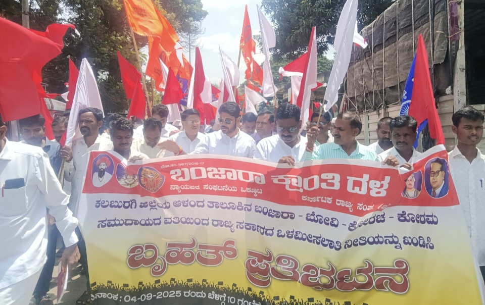 ನಾಗಮೋಹನ್ ದಾಸ್ ವರದಿ ಪುನರ್ಪರಿಶೀಲನೆ ಒತ್ತಾಯ – ಆಳಂದದಲ್ಲಿ ಲಂಬಾಣಿ, ಭೋವಿ, ಕೊರಮ, ಕೊಂಚ ಸಮುದಾಯಗಳ ಬೃಹತ್ ಪ್ರತಿಭಟನೆ.